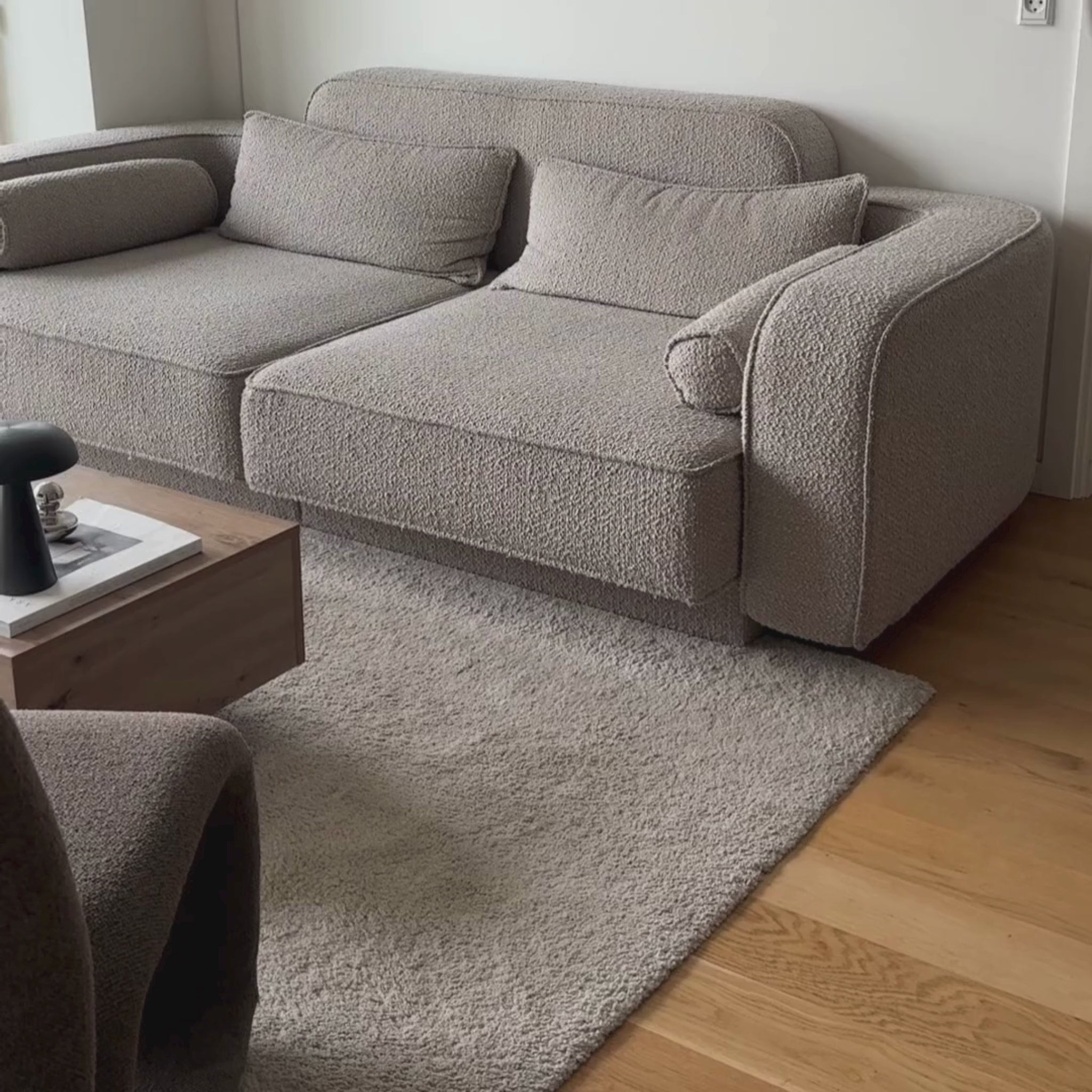 Luna is available in a curated selection of exclusive velvet and bouclé colors, so you can choose the texture and shade that fits your home best.